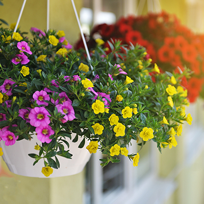 Hanging baskets may be used to fill in a landscaping plan, as a focal point or as a screen in front of windows to ensure privacy. For whatever use, remember that hanging baskets will require frequent watering and fertilizing.