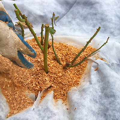 Tenting material can vary from a bed sheet, to a blanket, to burlap strips to specially formulated products such as N-Sulate, or Easy Gardener Plant Protecting Blanket. In each case, the tent acts like our clouds and reflects the ground heat back onto the plant. IT DOES NOT keep the cold out. Some of these materials reflect heat better than others. The best of course, are the commercial products such as N-Sulate. N-Sulate has a highly reflective interior covered with an insulating material to trap any escaping heat. N-Sulate will protect down to 22° F or 25° F Tenting material must be applied in the late afternoon and then removed each morning to take advantage of the sun warming the earth again.