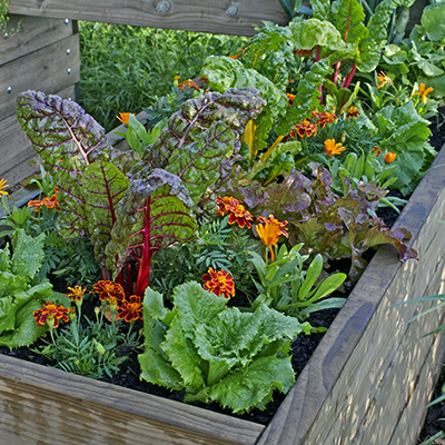 With a bit of extra effort and some common sense, you can grow (almost) any vegetable in a container that would normally be planted in the ground (no, not corn!). See our Care Guide on Container Gardening for the pros and cons of the various materials used for containers; from terra cotta to plastic. It doesn’t make much difference which you choose so far as the plant is concerned. Unquestionably, the most economical will be a used black plastic nursery pot. Black pots absorb heat and are particularly suitable early in the growing season when the air and soil are still cold. During late July and August when we approach three digit temperatures, it would be wise to shield the pots with aluminum foil because soil temperatures over 85-90°F will damage plant roots.