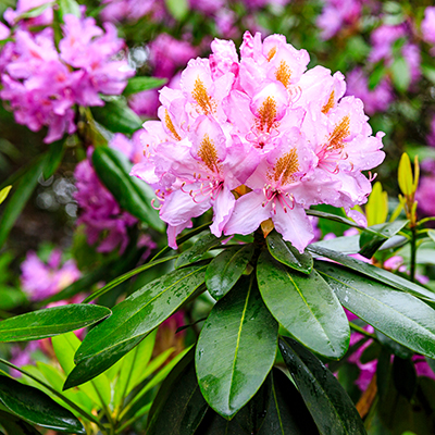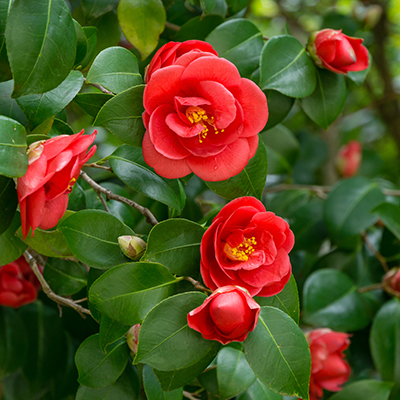 General Information: Prized as ornamental shrubs the world over, rhododendrons are renowned for their dramatic flower trusses, azaleas for their vibrant displays of color, and camellias for their perfectly formed, iridescent blossoms. In addition to their blossoms, all offer variety in shape and size and versatility in the landscape. Additionally, they also provide handsome evergreen foliage. Although rhododendrons and azaleas, both in the genus rhododendron, are from a different plant family than camellias, all require similar care and growing conditions in our area.