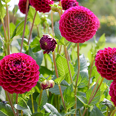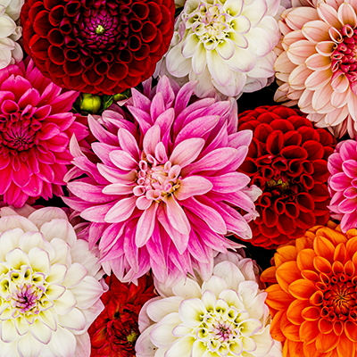 DAHLIAS DO NOT PRODUCE ONE KIND OF FLOWER. There are twelve different flower forms with blooms ranging from ten inches in diameter on the decorative (dinner plate) type down to the one inch pompons. The pompons may be only one foot tall while the dinner plate forms are up to six or seven feet tall. All are hybrids of two or three plants brought up from Mexico and South America in the 1800s. And, all are deer and rodent resistant.